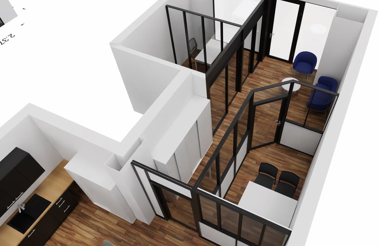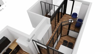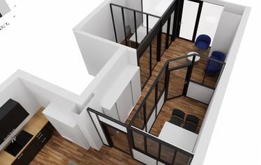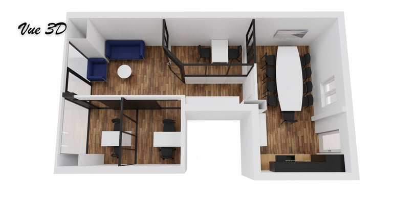 L'objectif était d'optimiser les lieux pour octroyer de l'intimité à chaque salarié et avoir une nouvelle salle de réunion fonctionnelle intégrant une nouvelle cuisine.